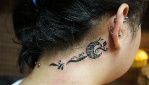 颈部图腾月亮藤蔓纹身图案