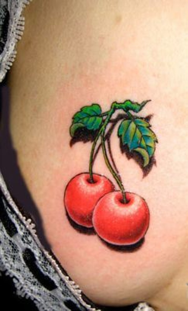 胸部彩色水果樱桃纹身图案
