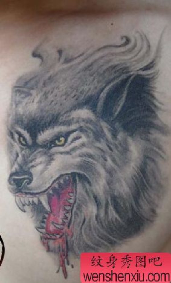 胸部滴血狼头纹身图案