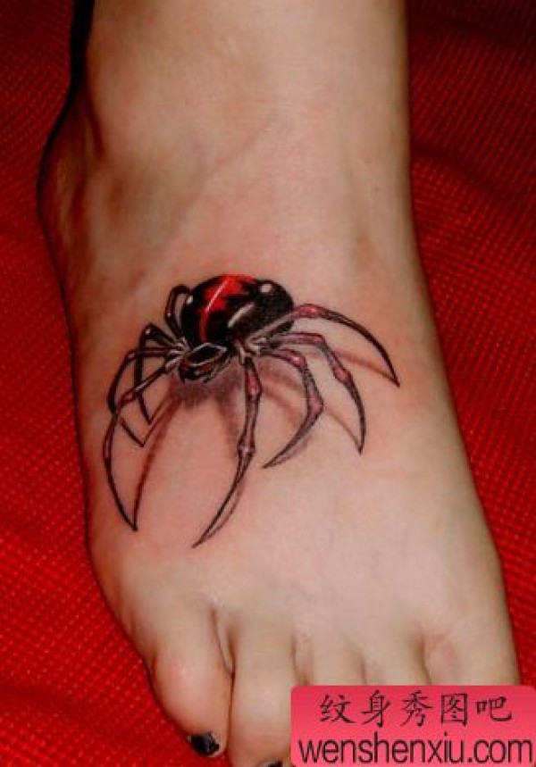 脚部彩色蜘蛛纹身图案