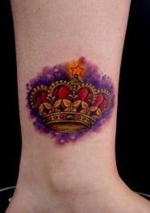 腿部彩色皇冠纹身图案
