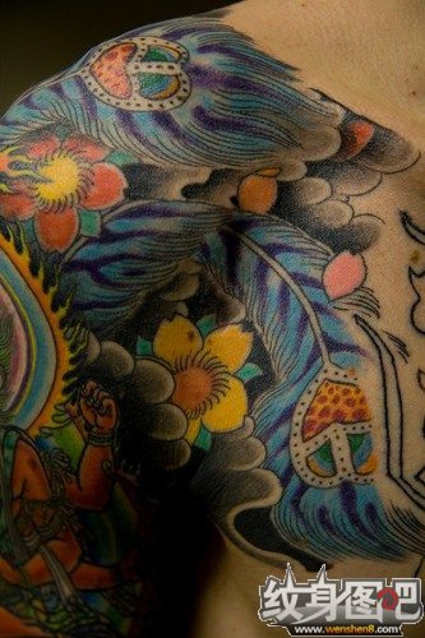 女生肩花纹身_15张女性双肩对称的肩花纹身图案作品图片