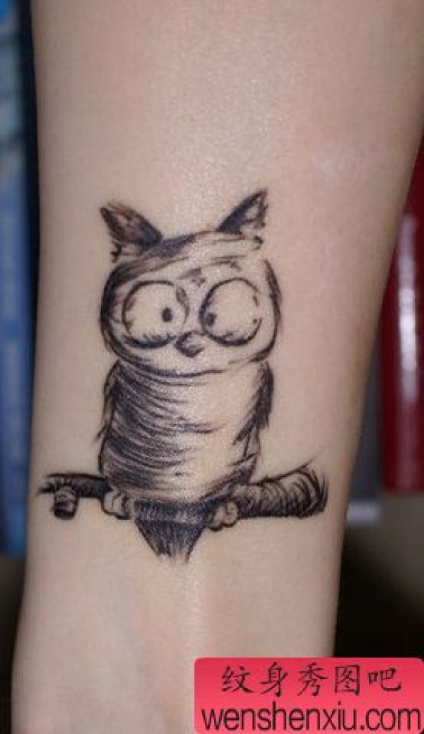 手臂简洁猫头鹰纹身图案