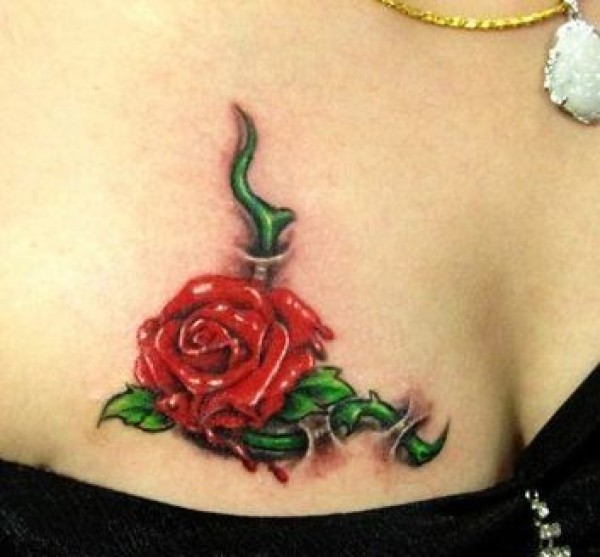 胸部彩色玫瑰纹身图案