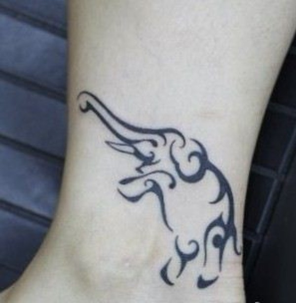腿部图腾大象纹身图案