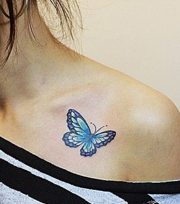 肩部彩色小蝴蝶纹身图案