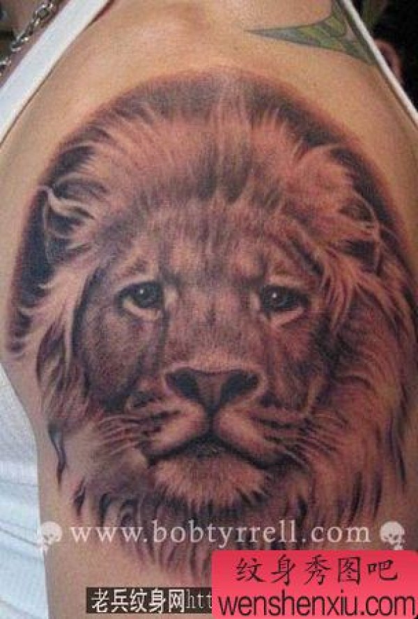 超霸气手臂狮子头纹身图案