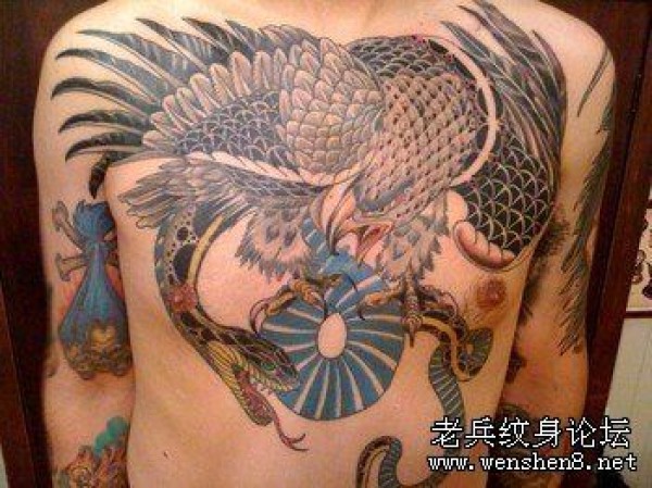 胸部老鹰蛇纹身图案
