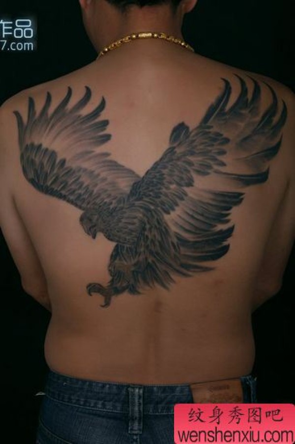 满背老鹰纹身图案