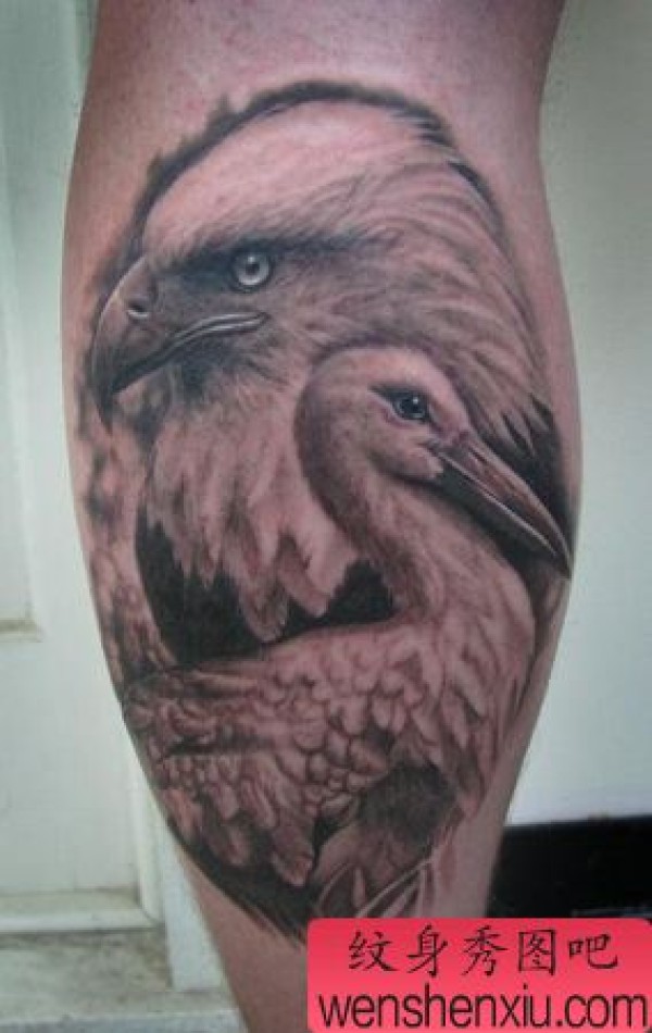 腿部老鹰天鹅纹身图案