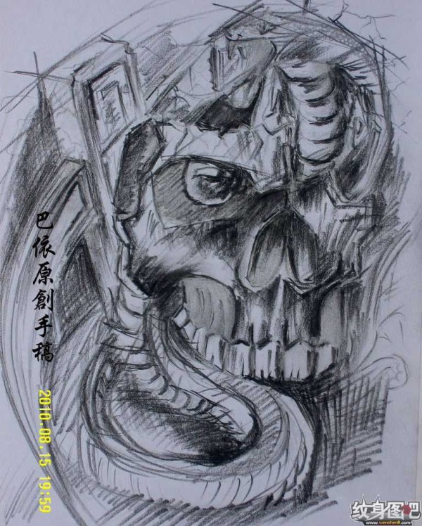 龙纹身手稿_一组老传统黑灰龙手稿纹身图案