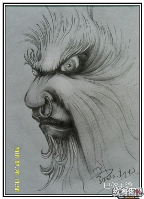 能面万媚纹身手稿_52张日式能剧面具纹身手稿图案素材欣赏