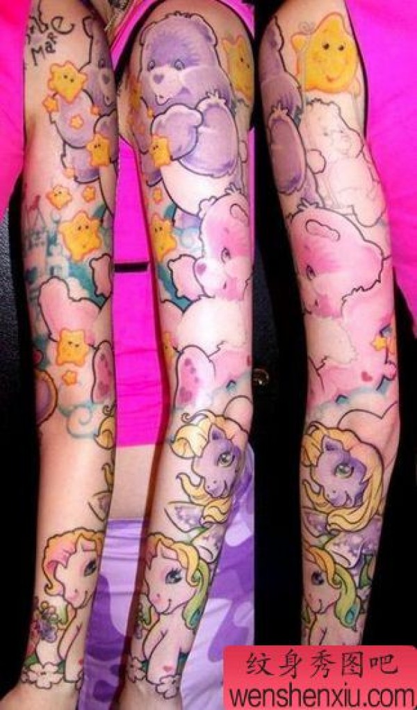 超可爱彩色卡通星星小熊独角兽花臂纹身图案