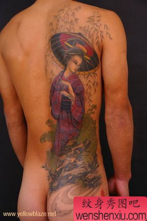背部日本和服美女纹身图案