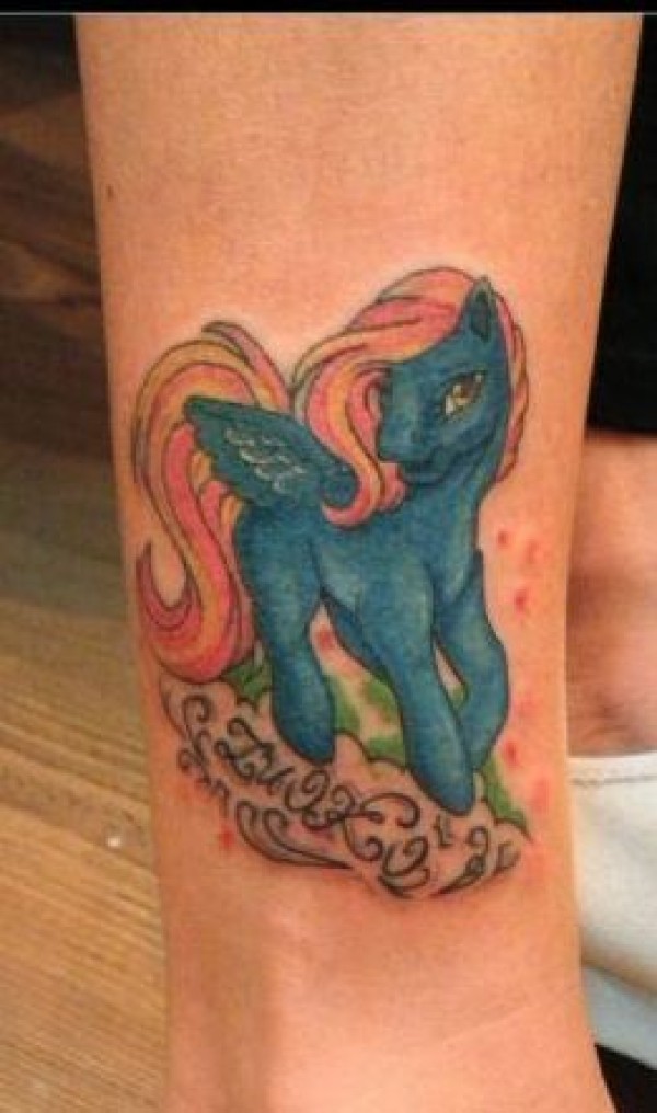 一张美女腿部可爱彩色卡通独角兽纹身图案