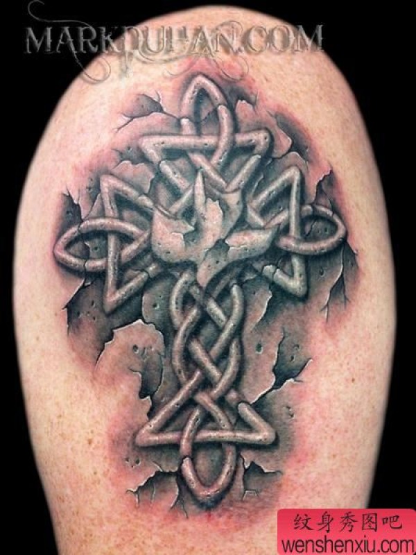 大臂地裂十字架纹身图案