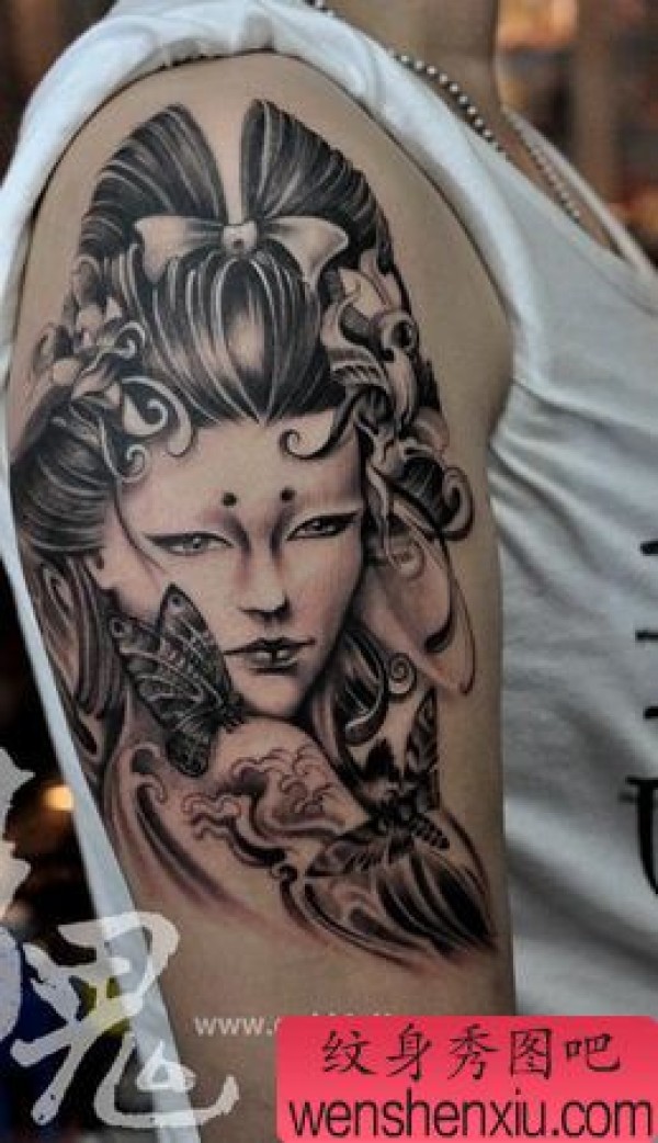 手臂日本美女艺妓纹身图案