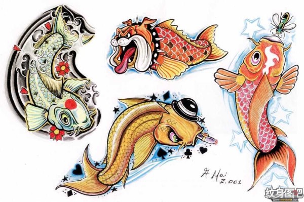 双鱼座纹身手稿_45张十二星座之双鱼手稿纹身图案