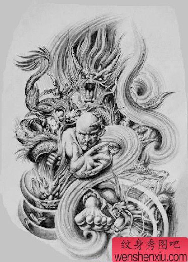 龙纹身手稿_一组老传统黑灰龙手稿纹身图案