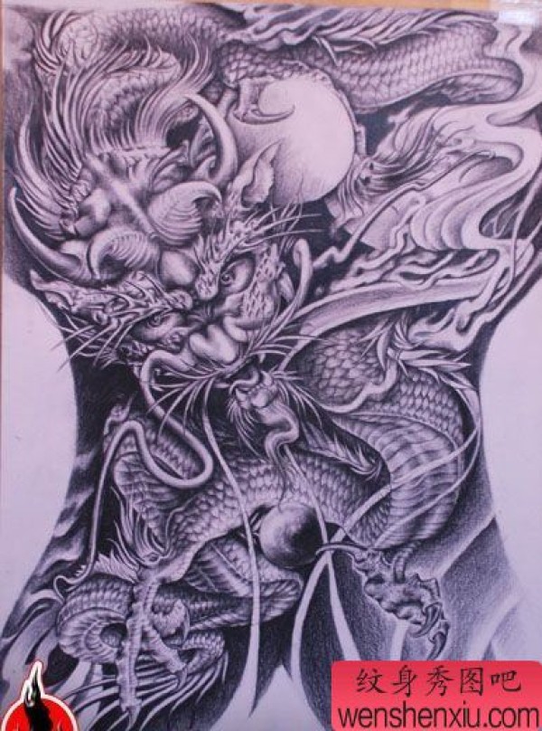 龙纹身手稿_一组老传统黑灰龙手稿纹身图案