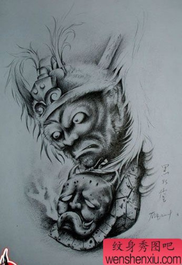 能面万媚纹身手稿_52张日式能剧面具纹身手稿图案素材欣赏