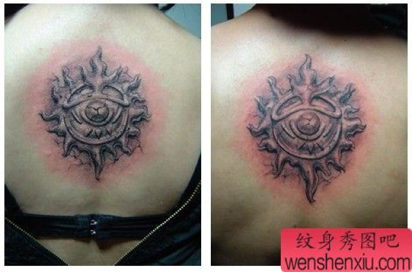 后背情侣烙印太阳纹身图案