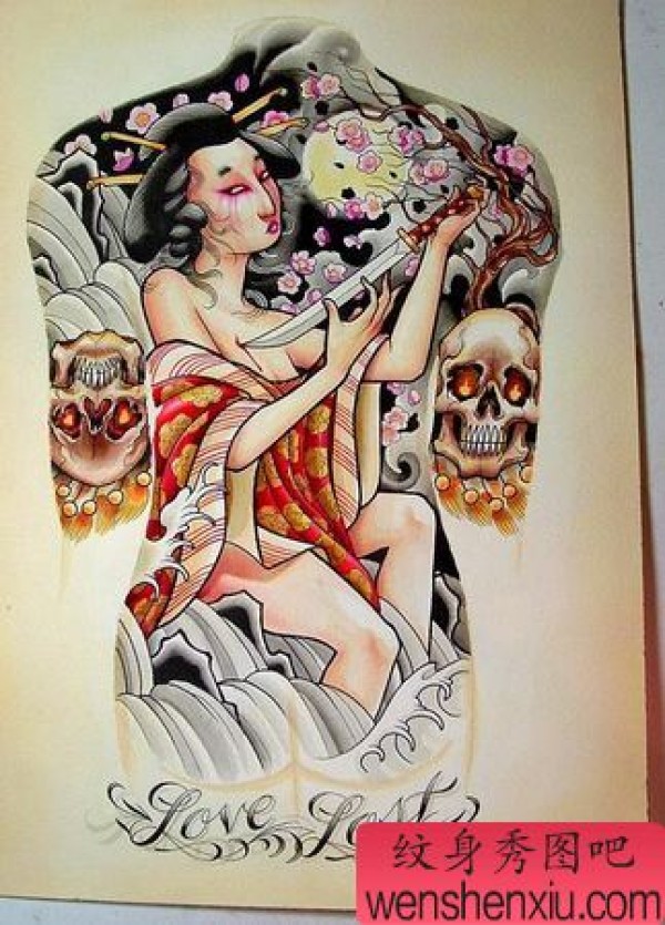 能面万媚纹身手稿_52张日式能剧面具纹身手稿图案素材欣赏
