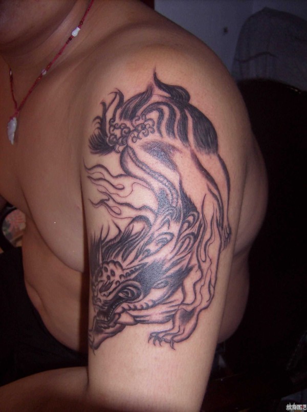 龙纹身手稿_一组老传统黑灰龙手稿纹身图案