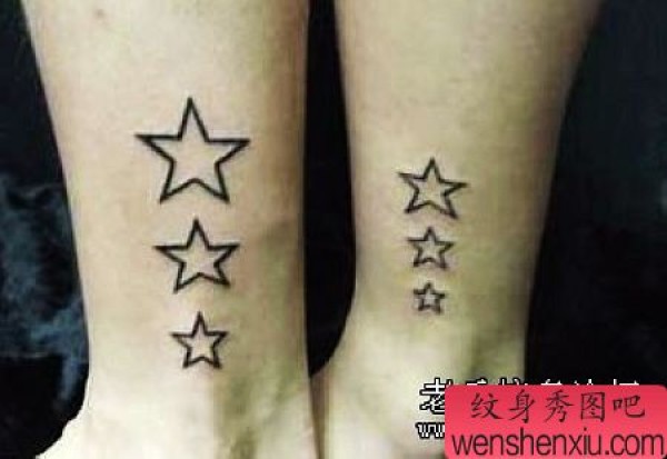 腿部情侣五角星纹身图案
