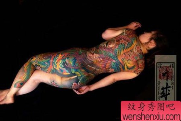 日本女生背凤凰纹身