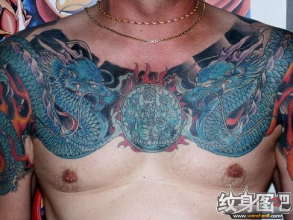 胸部的双龙戏珠
