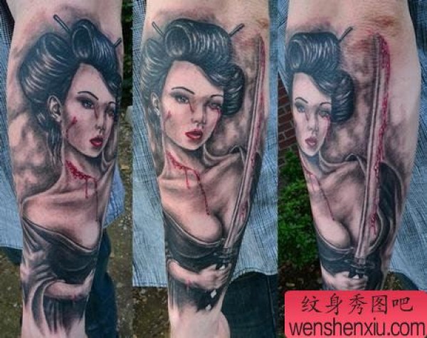手臂日本美女武士纹身