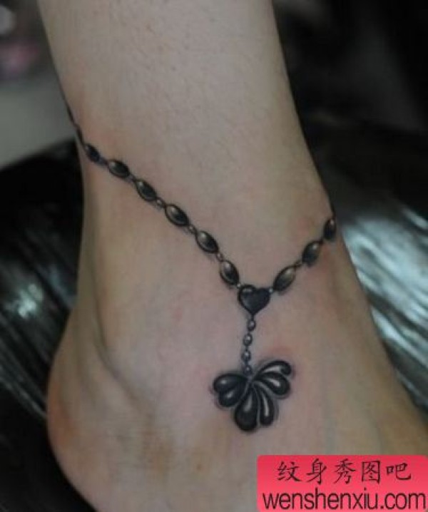 脚部三叶草项链纹身图案