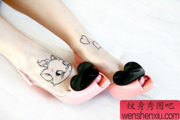 美女脚部可爱猫咪纹身图案