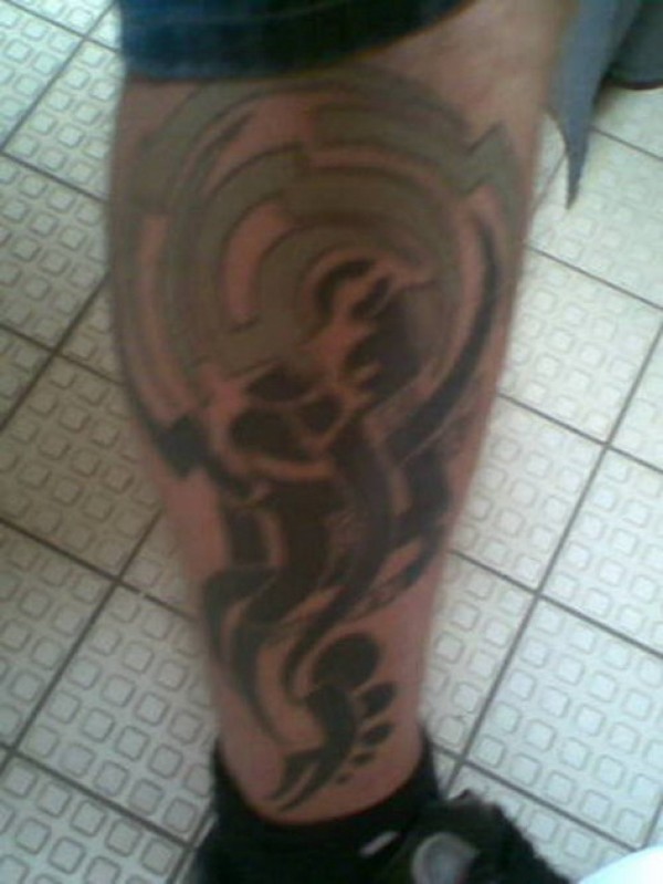 老外小腿上诡异的图腾纹身