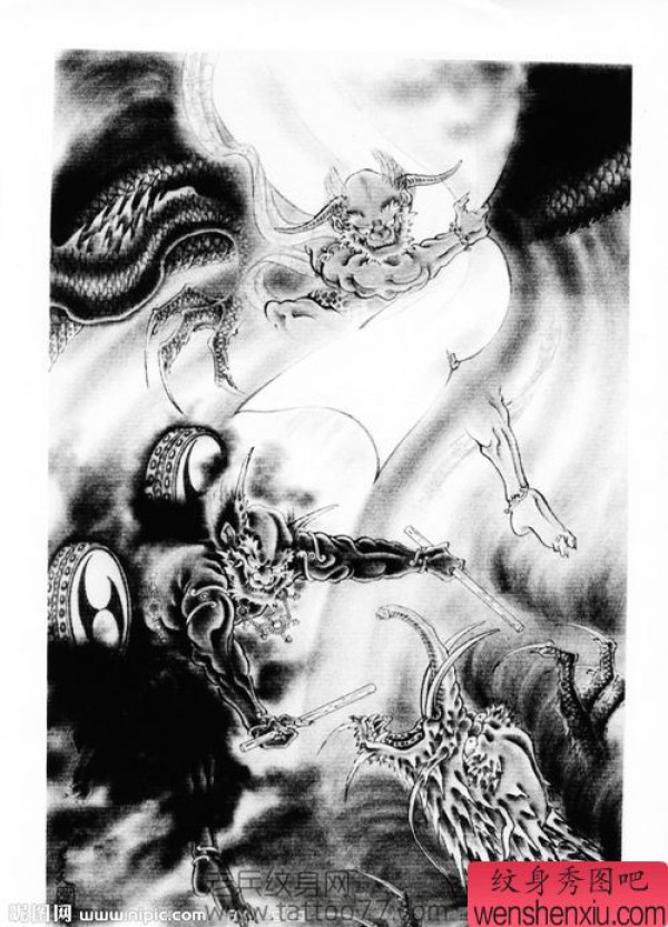 龙纹身手稿_一组老传统黑灰龙手稿纹身图案