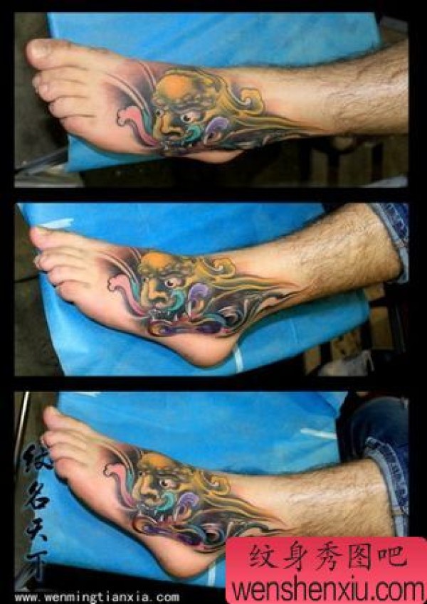 脚部彩色神兽纹身图案