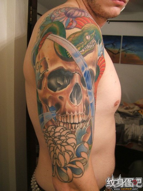 手臂莲花蛇纹身图案_臂部纹身图案大全_纹身图吧