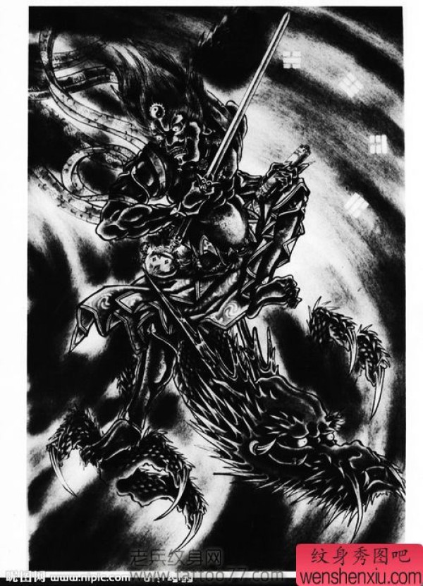 龙纹身手稿_一组老传统黑灰龙手稿纹身图案