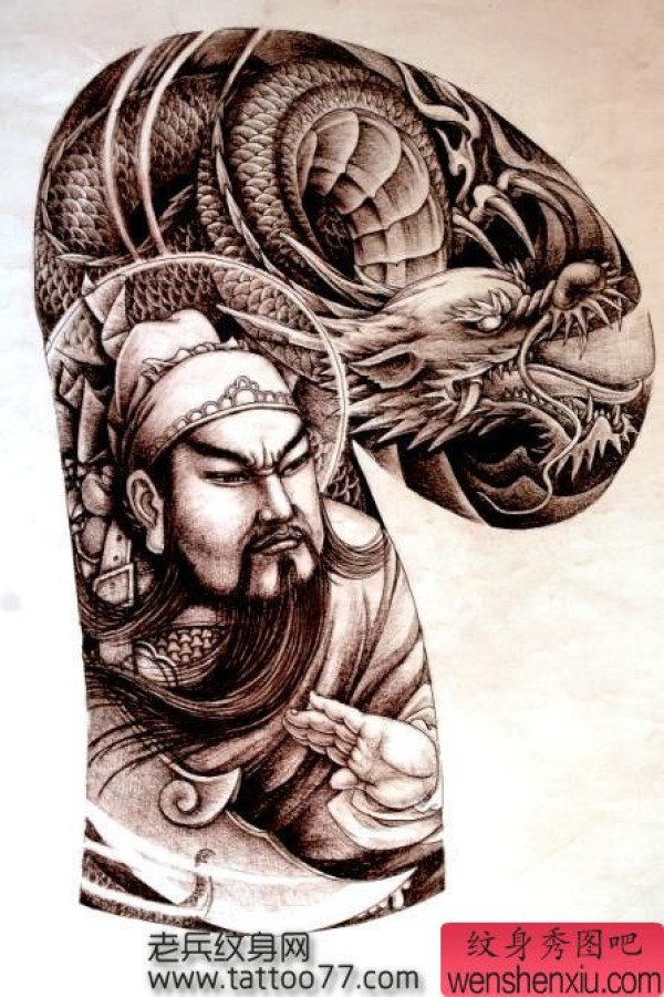 龙纹身手稿_一组老传统黑灰龙手稿纹身图案