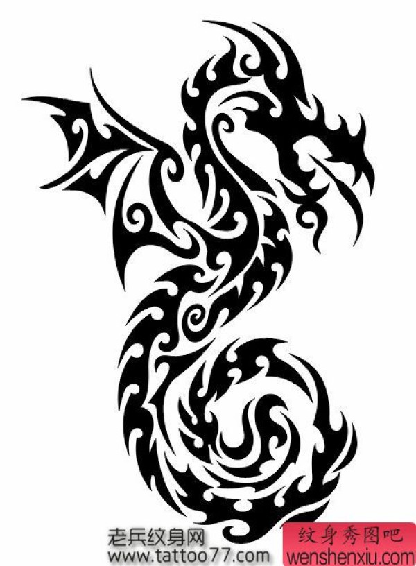 龙纹身手稿_一组老传统黑灰龙手稿纹身图案