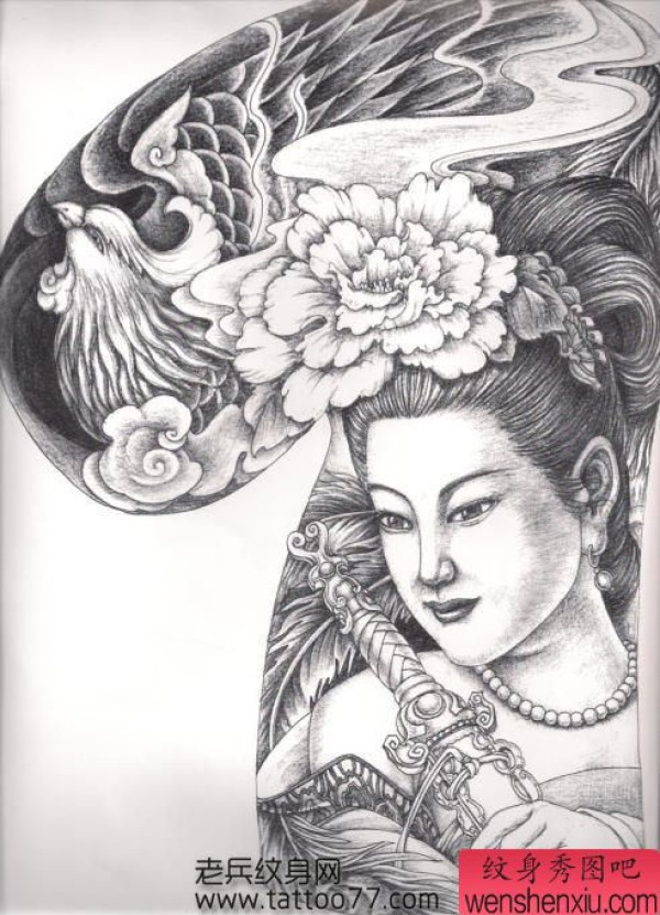 能面万媚纹身手稿_52张日式能剧面具纹身手稿图案素材欣赏