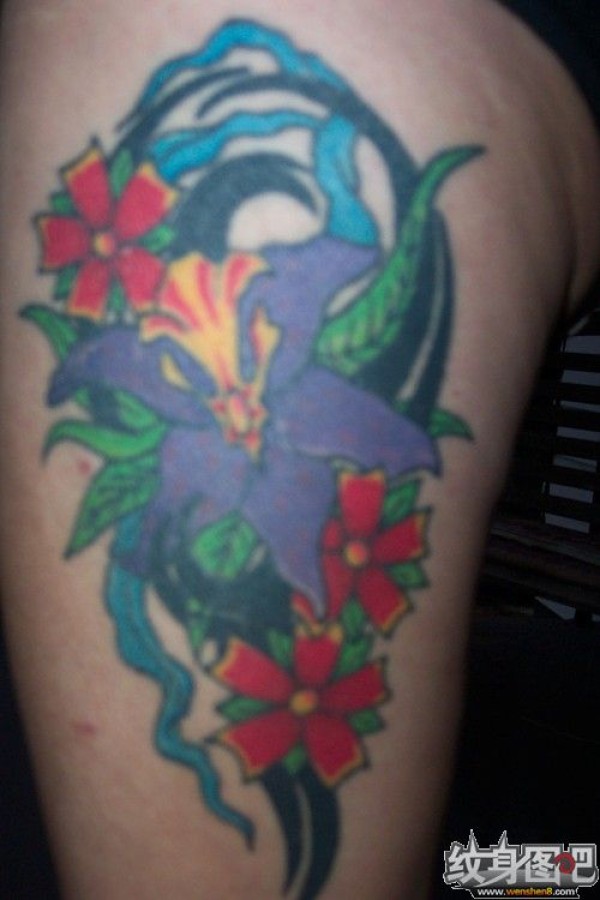 清新花朵腿部纹身图案图片_植物纹身图案大全_纹身图吧