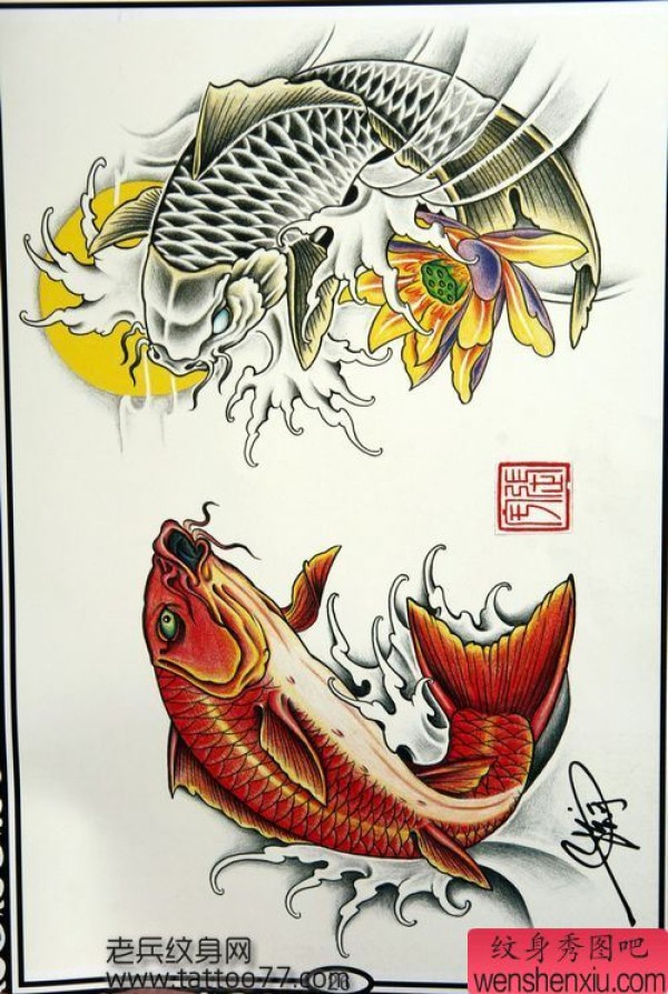 纹身图吧为你分享一张鲤鱼纹身手稿