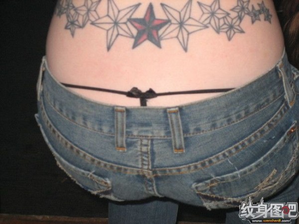 女生后腰纹身黑白灰风格抽象线条纹身图案