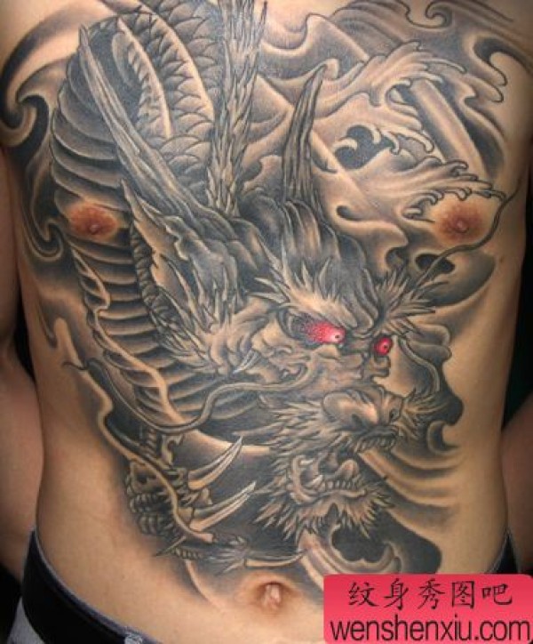 龙纹身手稿_一组老传统黑灰龙手稿纹身图案