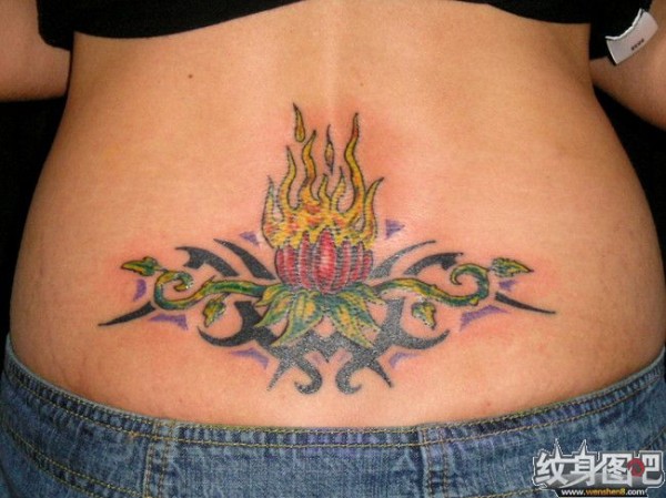 女性腰部莲花花纹刺青_腰部纹身图案大全_纹身图吧