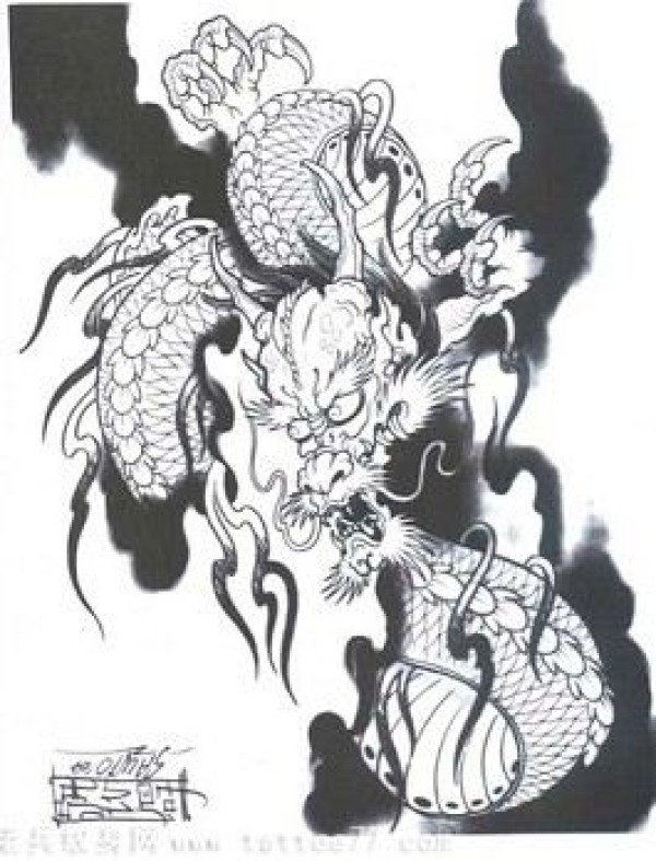 龙纹身手稿_一组老传统黑灰龙手稿纹身图案