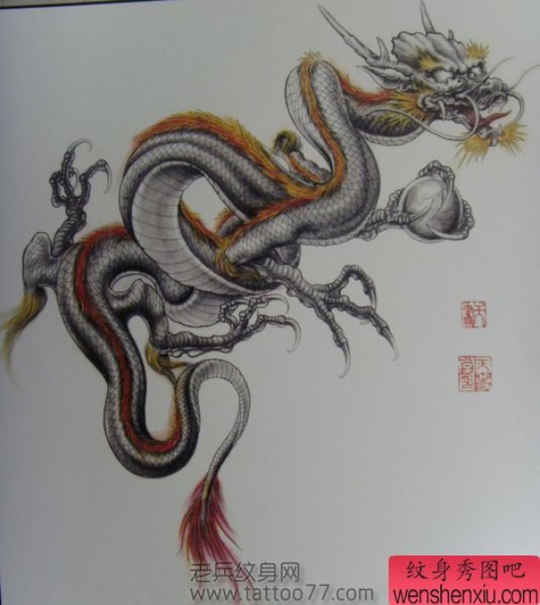龙纹身手稿_一组老传统黑灰龙手稿纹身图案