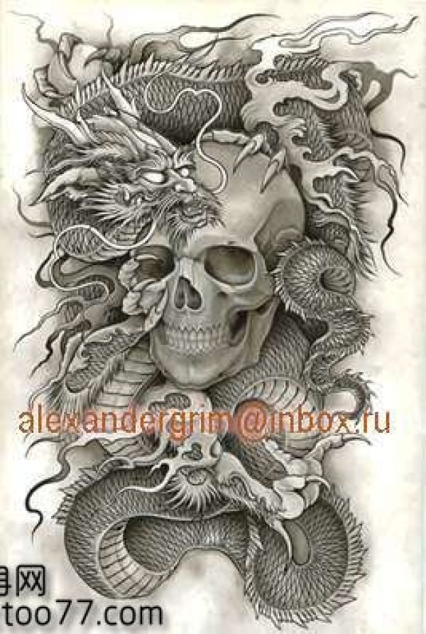 龙纹身手稿_一组老传统黑灰龙手稿纹身图案